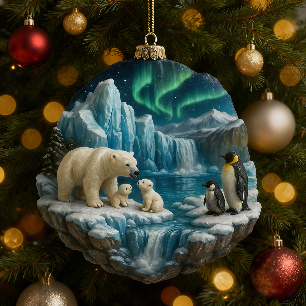 🐻❄️❄️🐧Bring the serenity and wonder of the frozen North to your Christmas tree with this enchanting Arctic Wonderland Ornament.