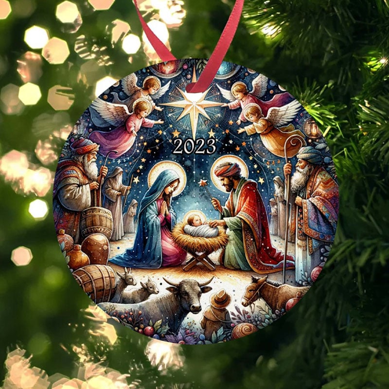 💖Embrace the spirit of Christmas with our Nativity Painting Christmas Ornament, a charming and enduring addition to your festivities.