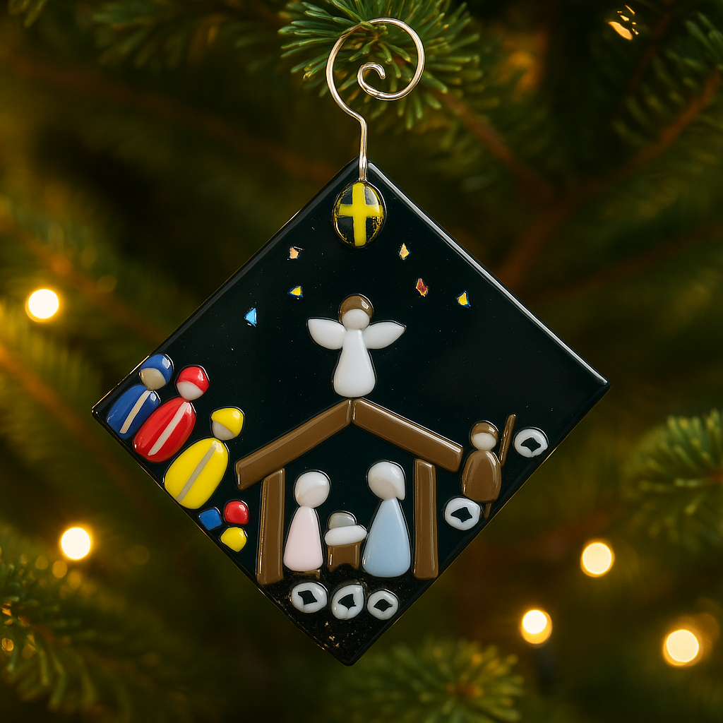 Made with durable glass and vibrant detail, this keepsake ornament reflects the warmth and faith of the season. Whether hung on your Christmas tree or gifted to loved ones, it’s a timeless reminder of the miracle of Christmas.